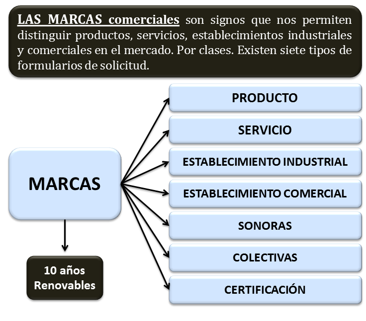 Las marcas puedes consistir en una palabra (MARCAS DENOMINATIVAS) o combinación de palabras (MARCA MIXTA), cifras; letras; simbolos; dibujos (MARCAS FIGURATIVAS); signos auditivos (MARCAS SONORAS).